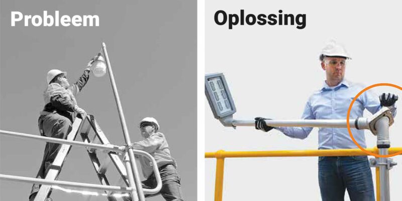 Probleem: Slechte verlichting leidt vaak tot industriële ongevallen, en moeilijk bereikbare armaturen maken eenvoudige lampvervanging riskant en lastig.